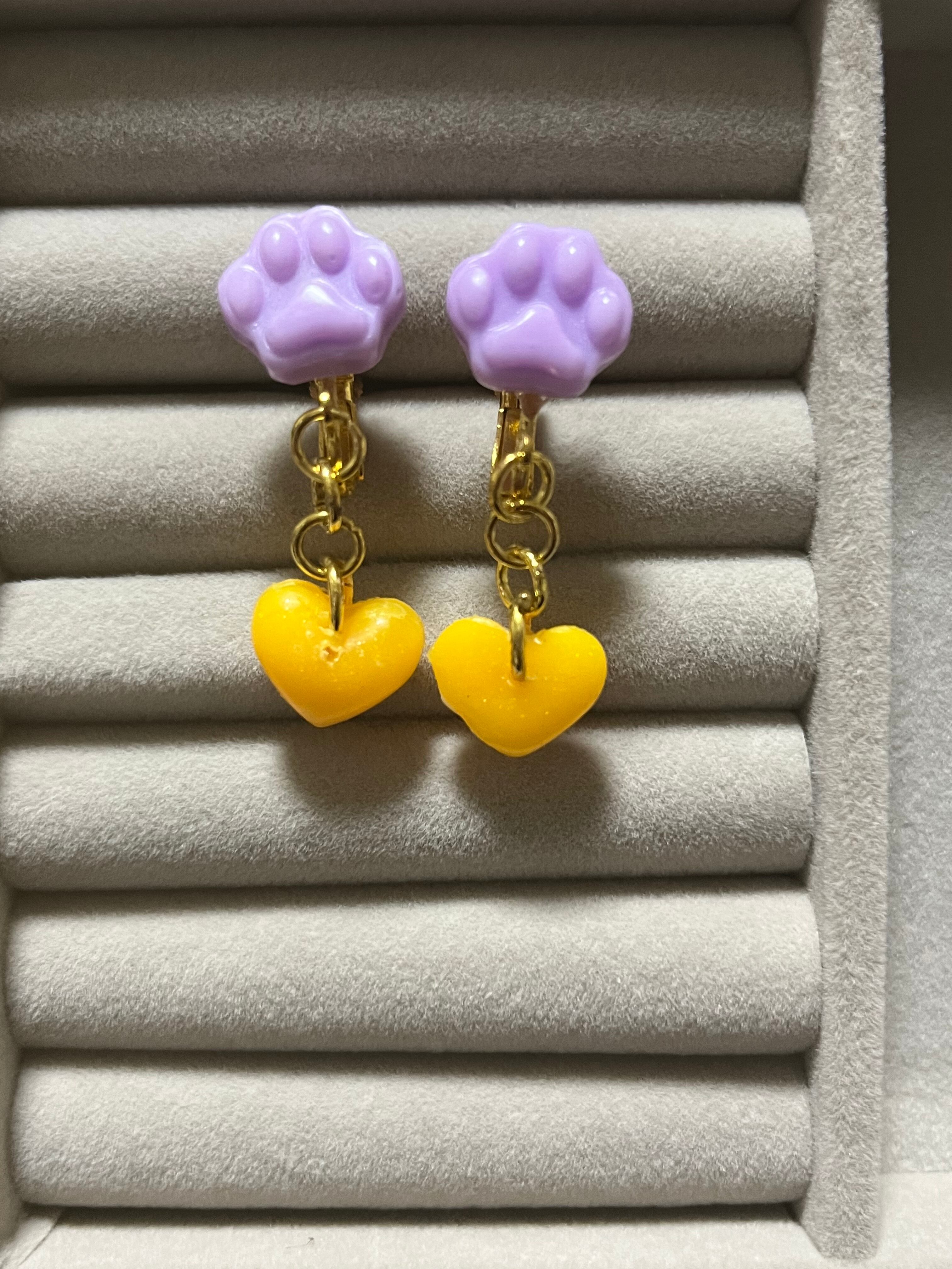肉球とハートのイヤリング