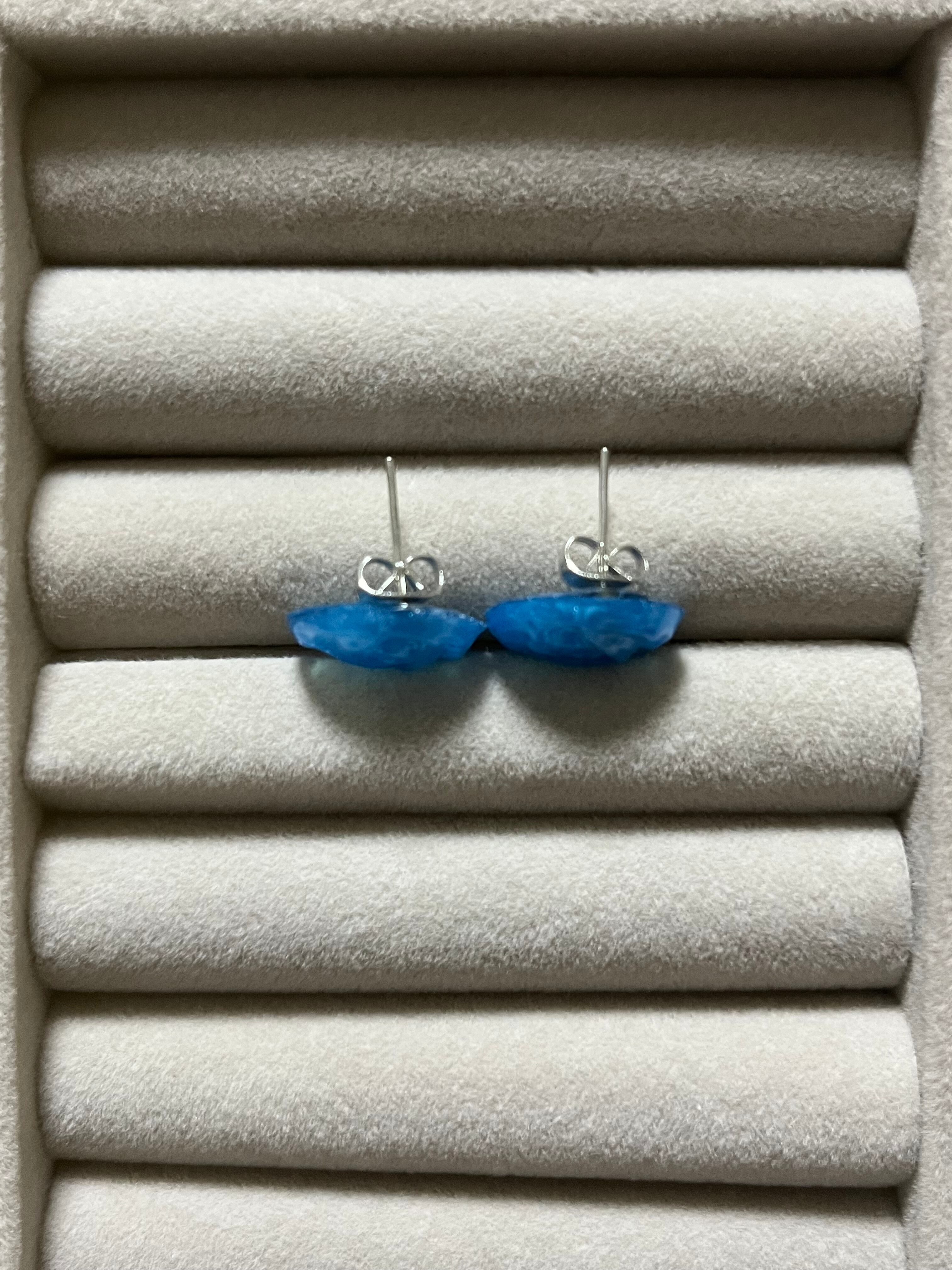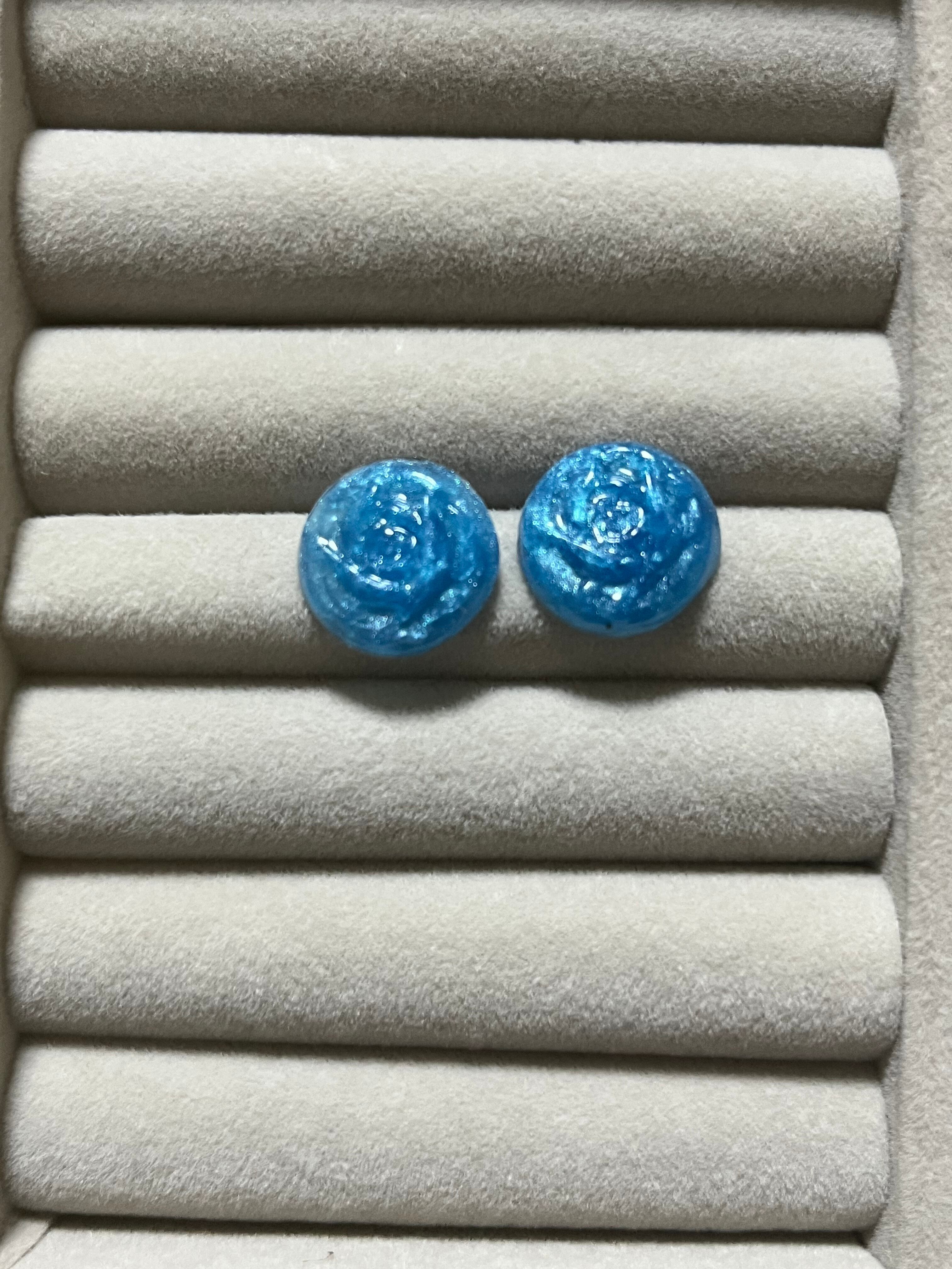 華やかな薔薇のピアスが、あなたのオシャレを引き立てます。一輪の青い薔薇をイメージしたデザインで、耳元にさりげなく華やかさをプラスします。丁寧に作られたハンドメイドアイテムで、一つひとつに個性と温かみがあります。