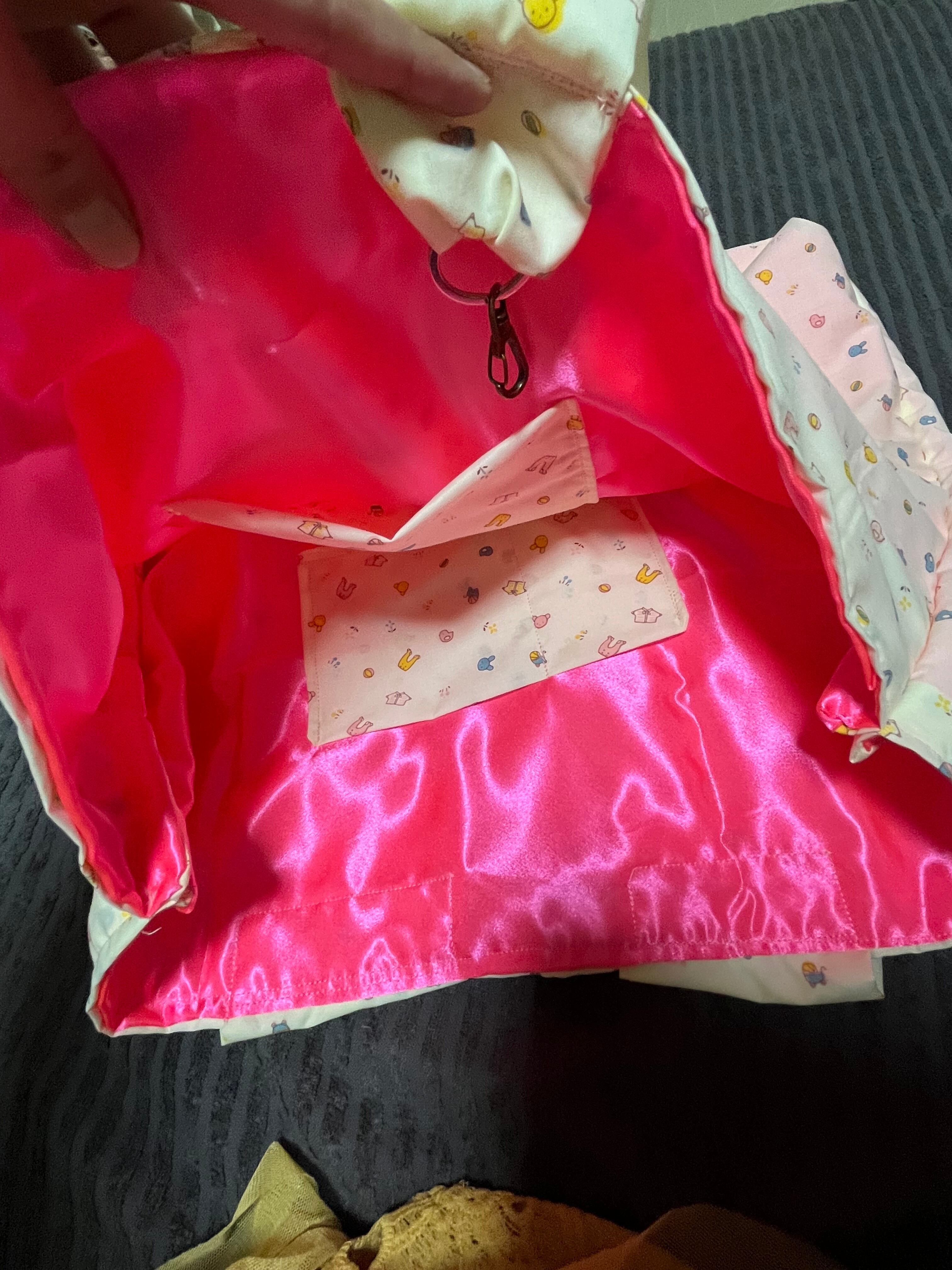 裏地はピンクで中に鍵などを付けれる様にしました。