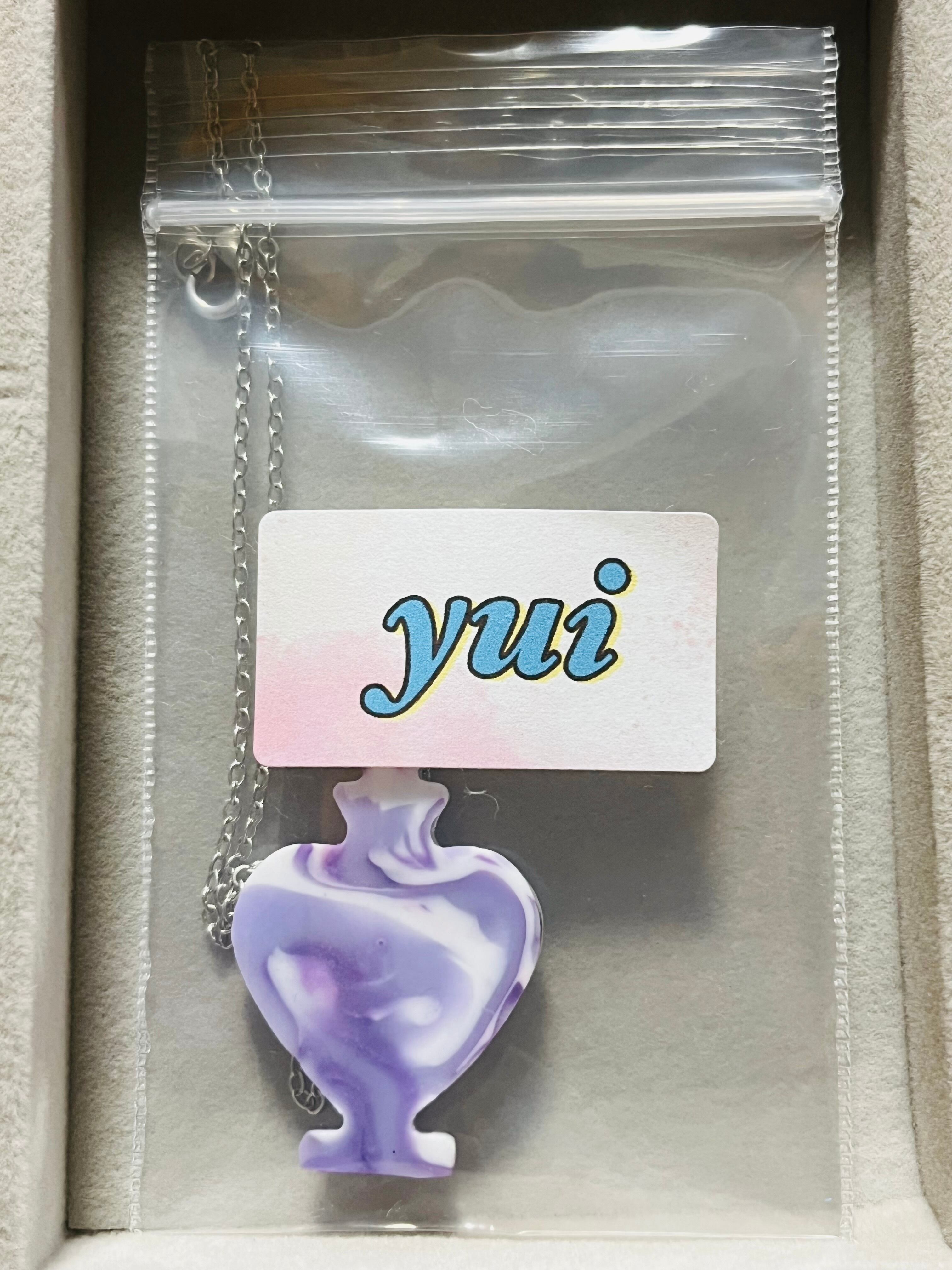 瓶の形をした紫ベースのネックレスとなります。