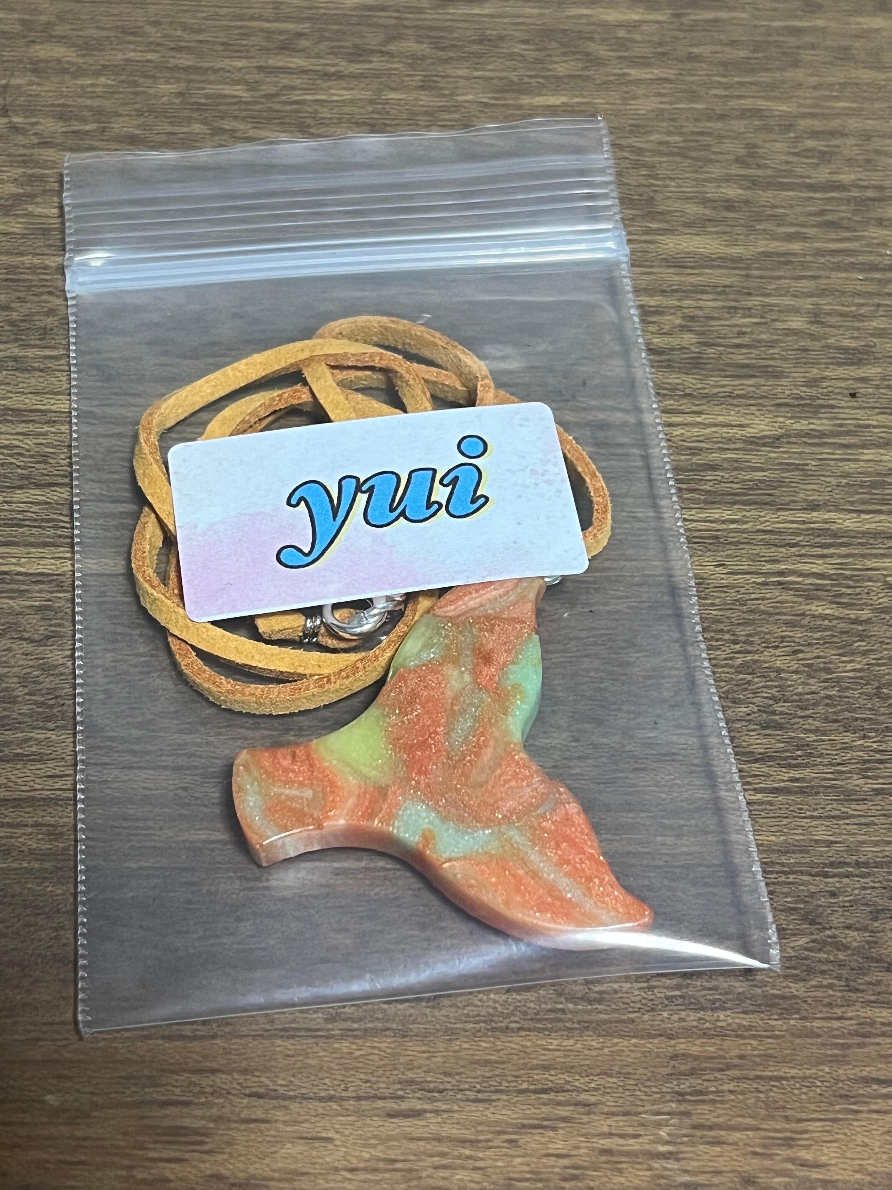 クジラの尻尾をモチーフに身に付けると斜めになる感じで作ってます。