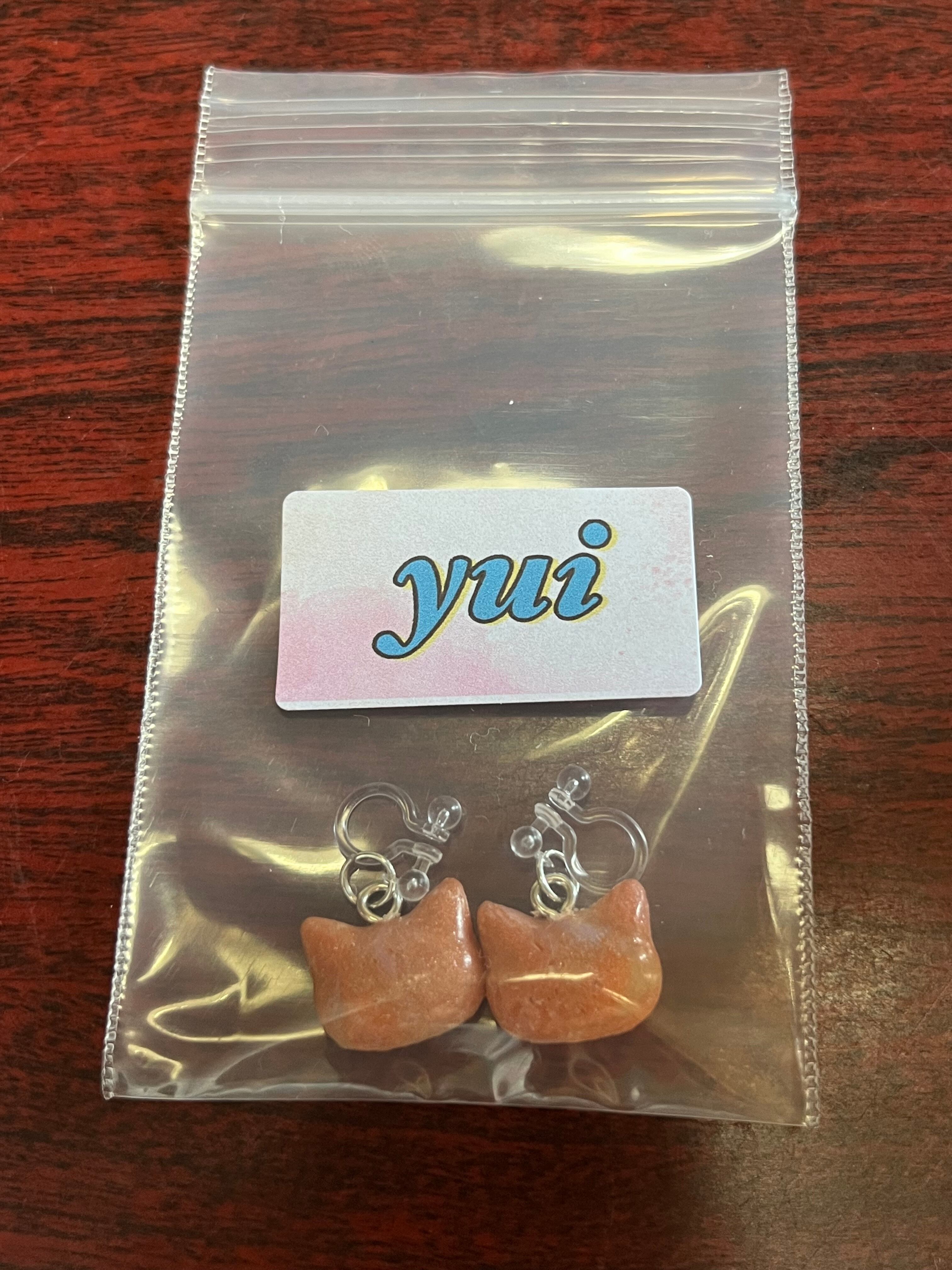 小さめの猫モチーフ型となってますのでワンポイントに揺れるイヤリングとなります。