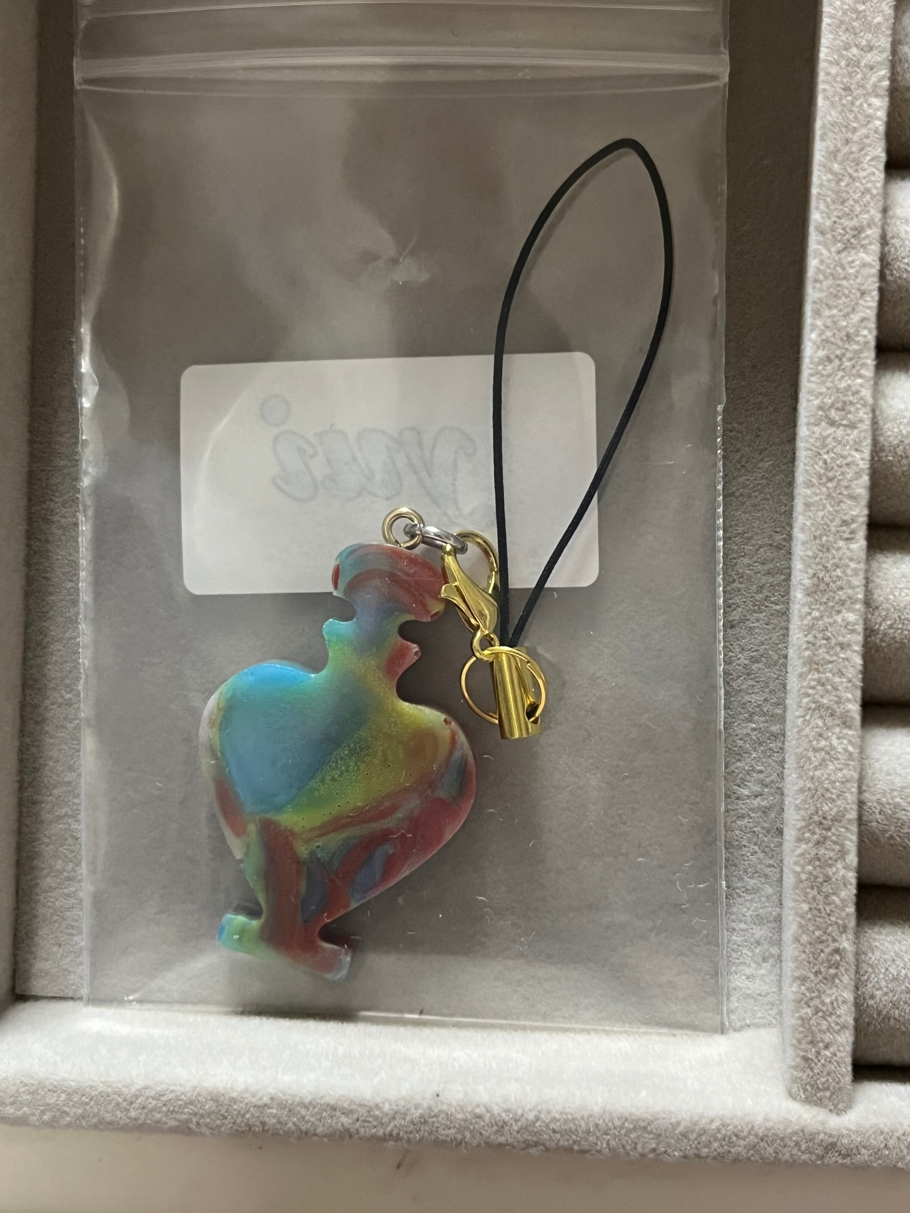 軽い素材で作成した瓶型のストラップとなります。