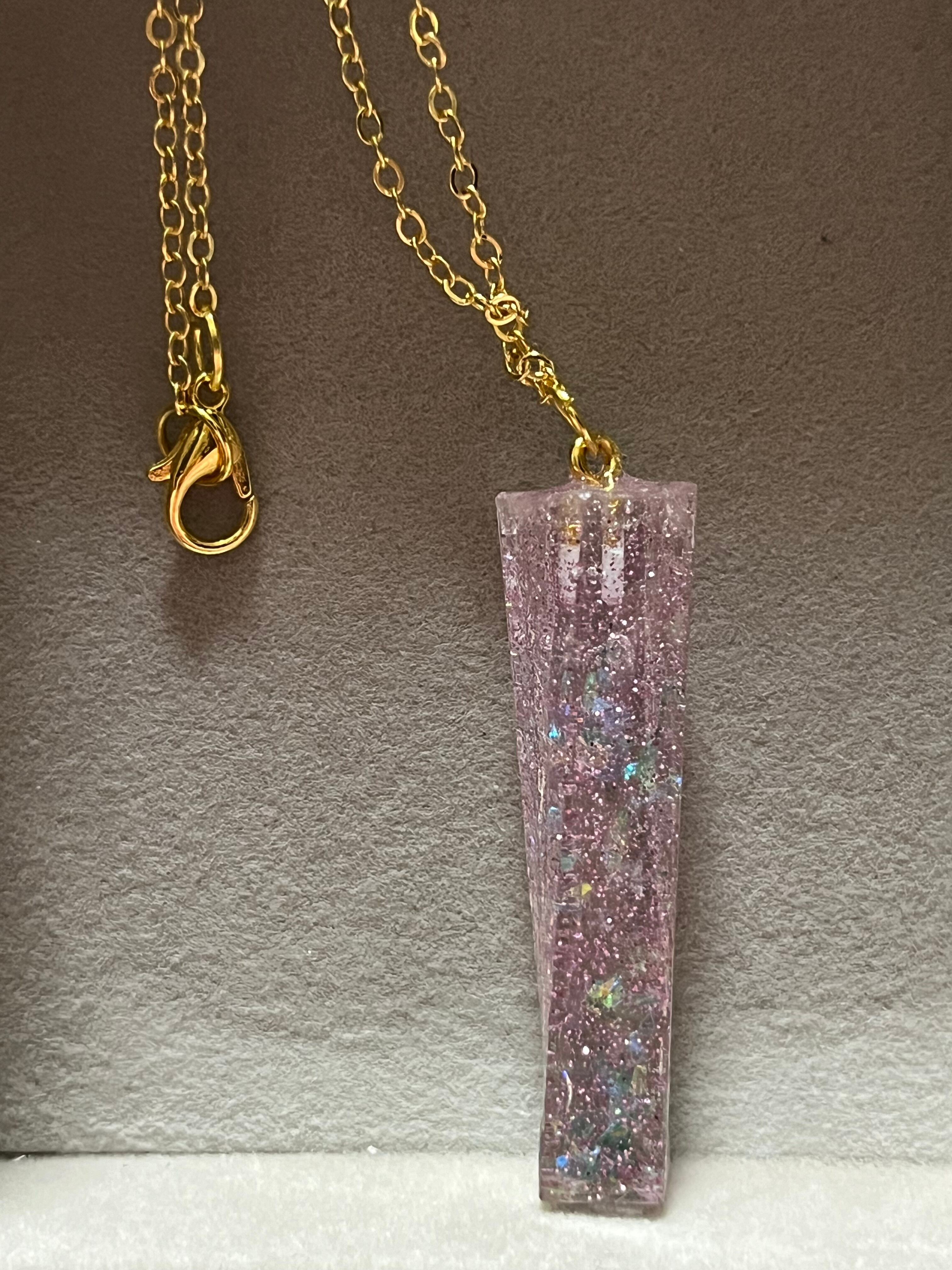 ピンクラメをメインとして緑色のホログラムを使用して捻れた長方形で作成しました。
