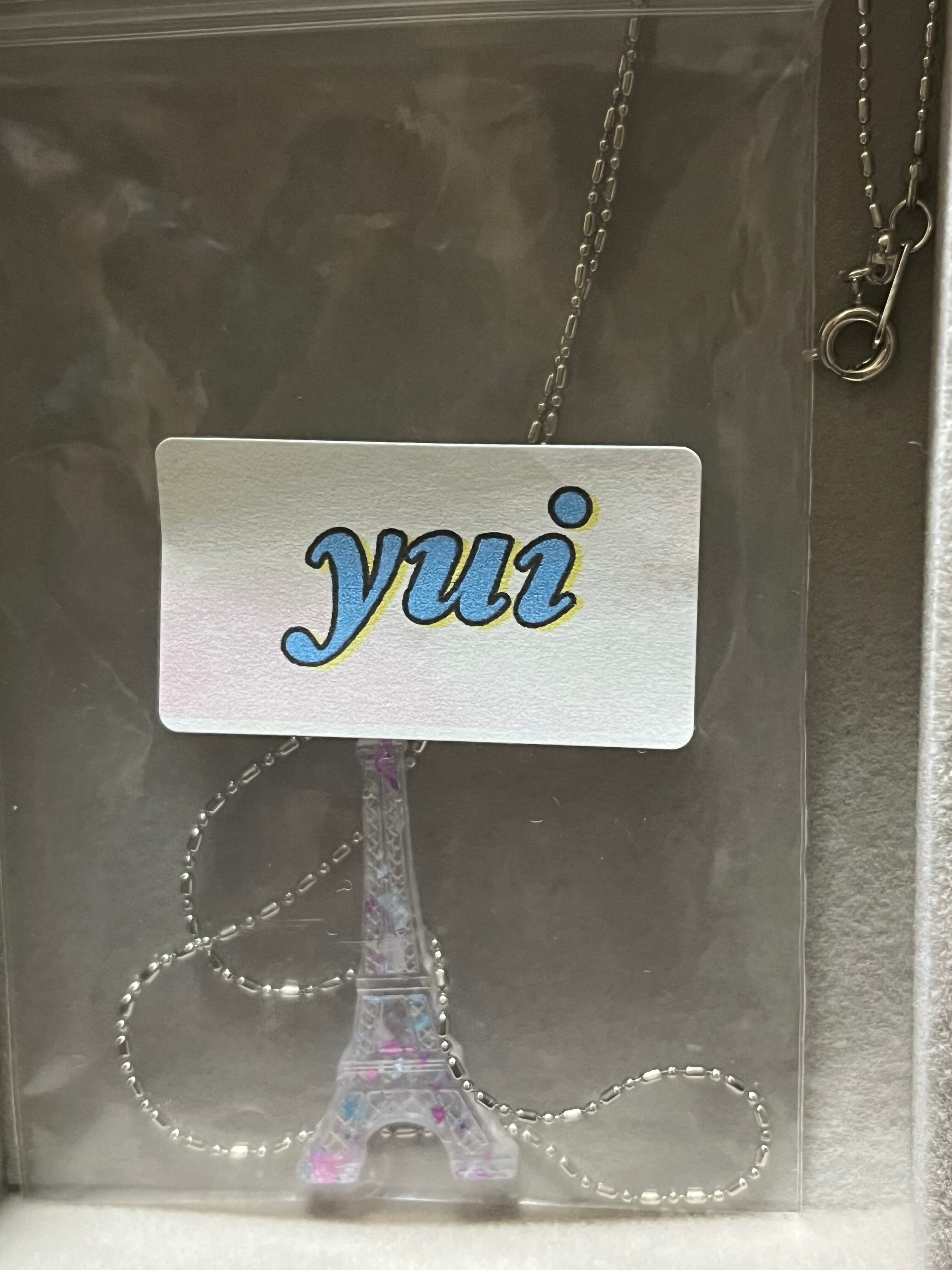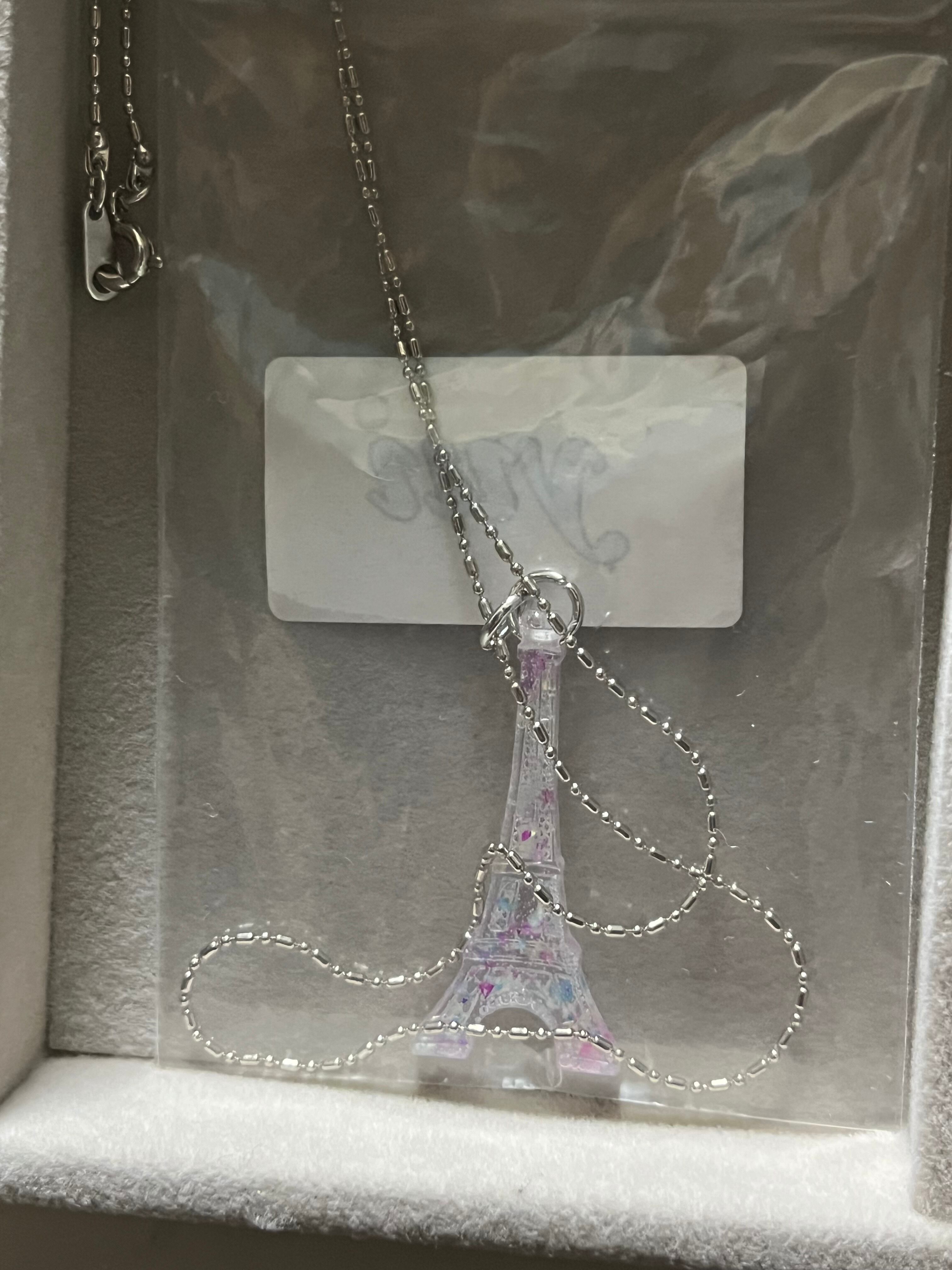 ピンクや青と少し色の入った透明感抜群のエッフェル塔型ネックレスとなります。