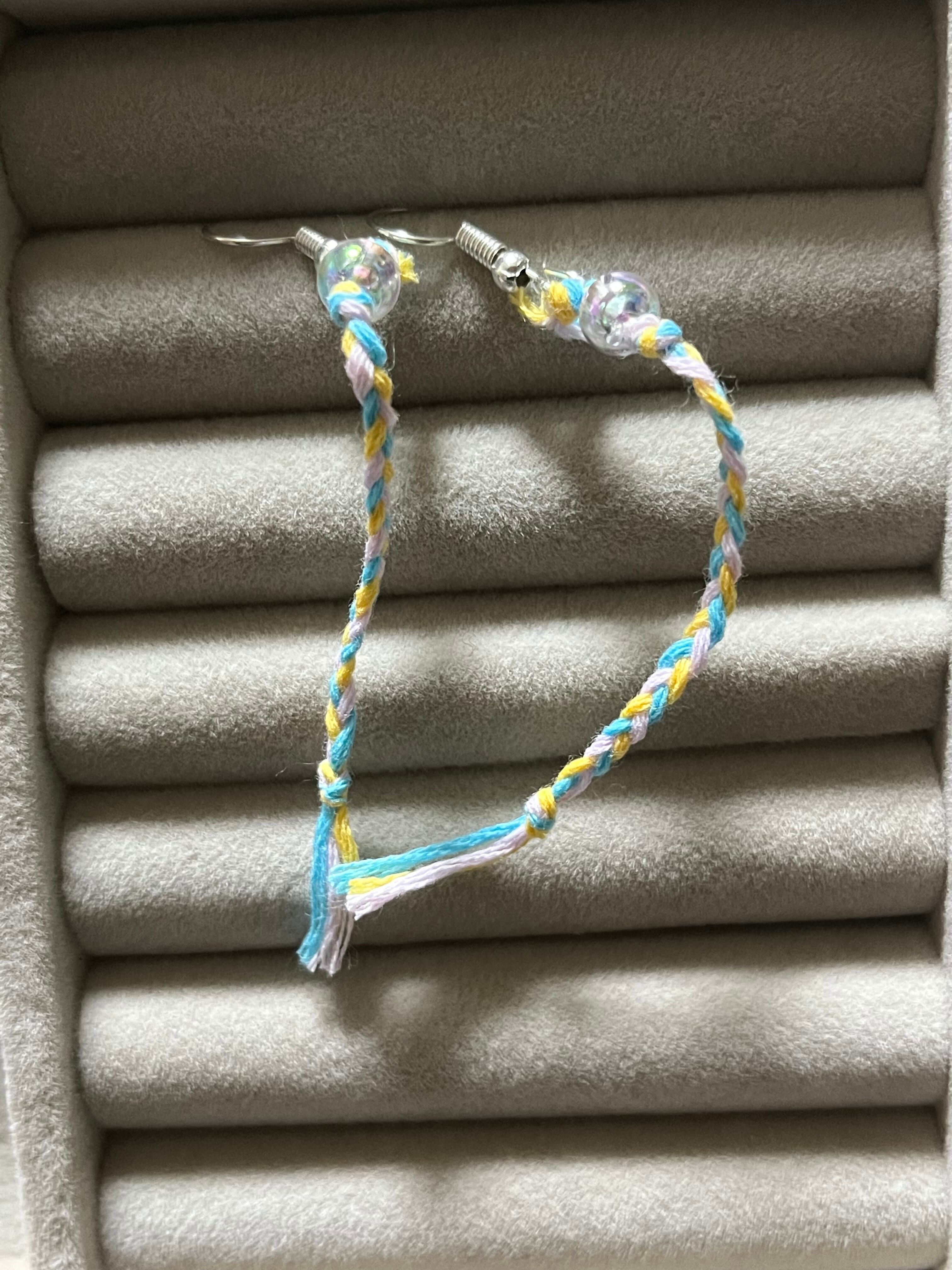 ミサンガにビーズを通してピアスにしてみました。