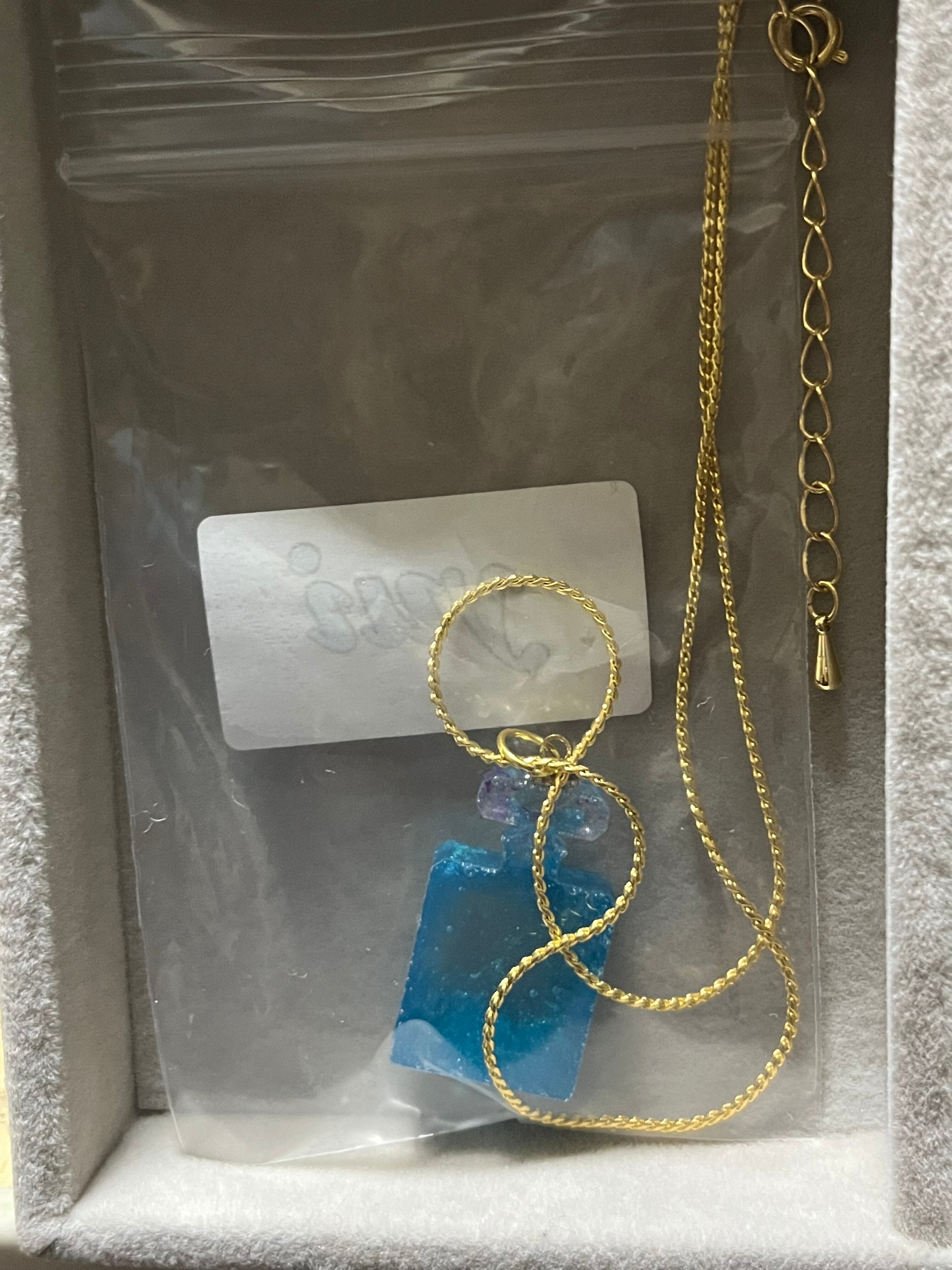 中央が透明感が高い不思議な感じに見えるネックレスとなっております。